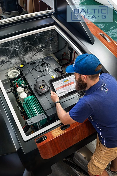 - Potente interfaz de diagnóstico TEXA combinada con el software de TEXA para los entornos MARINE y el ordenador portátil de diagnóstico BALTICDIAG.
