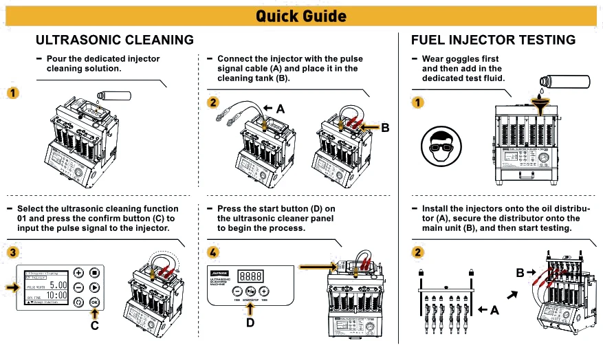The AUTOOL FN606 Fuel Injector Cleaner & Tester utilizes the latest ultrasonic cleaning and testing technology, supporting various types of fuel injectors such as GDI, EFI, and FSI. Whether it's forward or reverse flushing or leak detection, the AUTOOL Fuel Injector Cleaner & Tester enhances your work efficiency and testing accuracy.