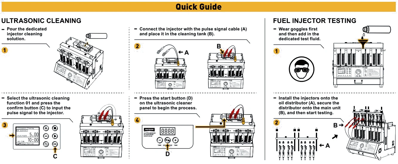 The AUTOOL FN608 Fuel Injector Cleaner & Tester utilizes the latest ultrasonic cleaning and testing technology, supporting various types of fuel injectors such as GDI, EFI, and FSI. Whether it's forward or reverse flushing or leak detection, the AUTOOL Fuel Injector Cleaner & Tester enhances your work efficiency and testing accuracy.