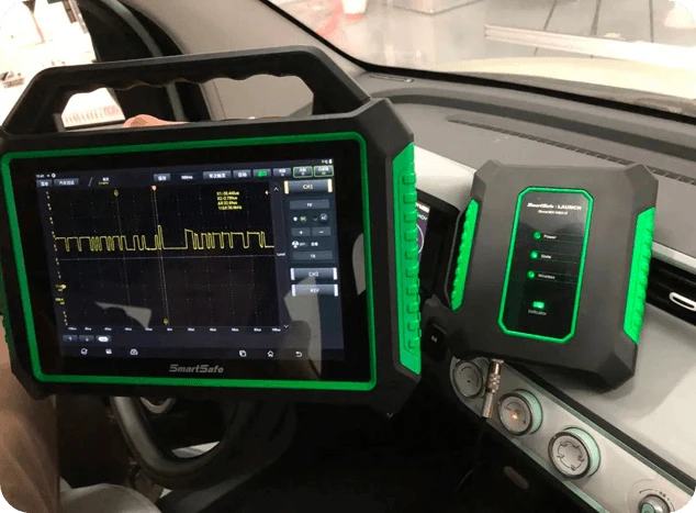 OM201 is newly launched by SmartSafe. It is an oscilloscope with multimeter, which has the functions of both oscilloscope vs multimeter. It is suitable for current, voltage and resistance measurement of electric vehicles. Used with P01, it supports both wireless and wired communication methods, and is easy to operate. It is the first choice for car repair shop personnel.