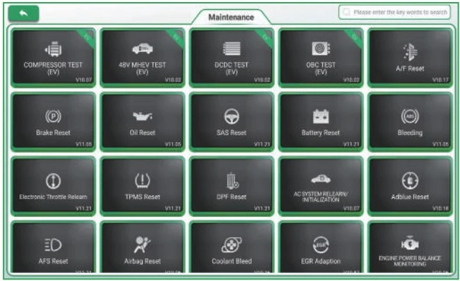 Supports testing of DC/DC converter, onboard charger, high-voltage distribution box, and other common maintenance functions